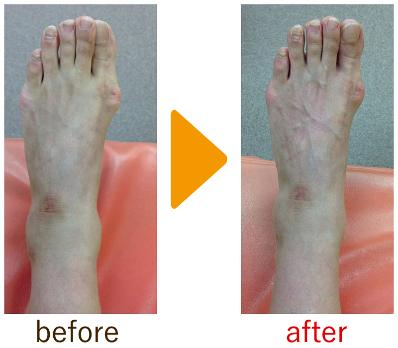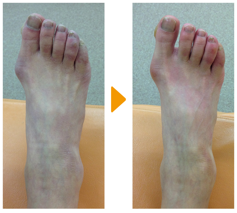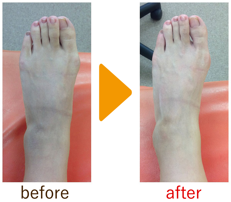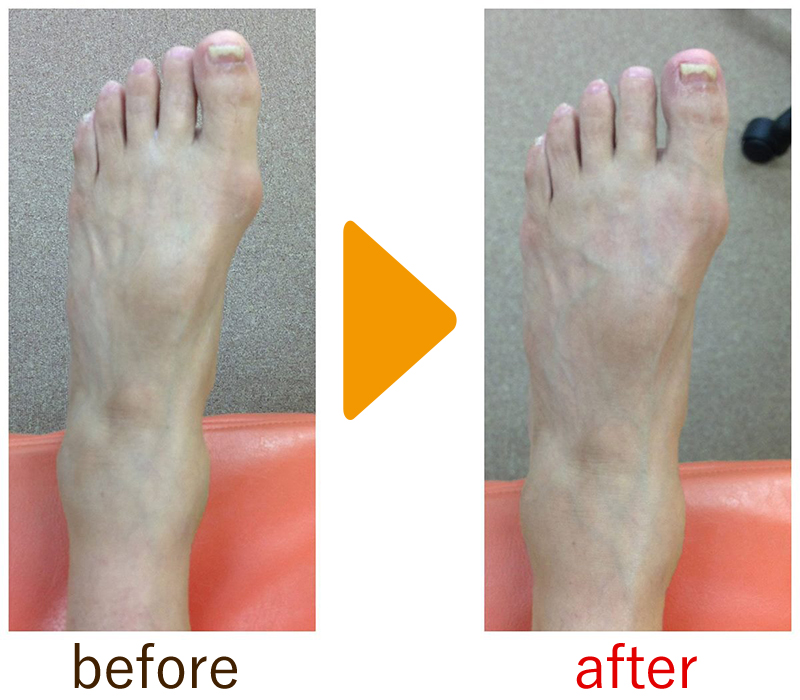 整形外科や他のフットケアを行う店舗では柔軟性を付けることができるかもしれませんが、関節の動きを付けたり変形して出っ張った骨を改善させることはできません。