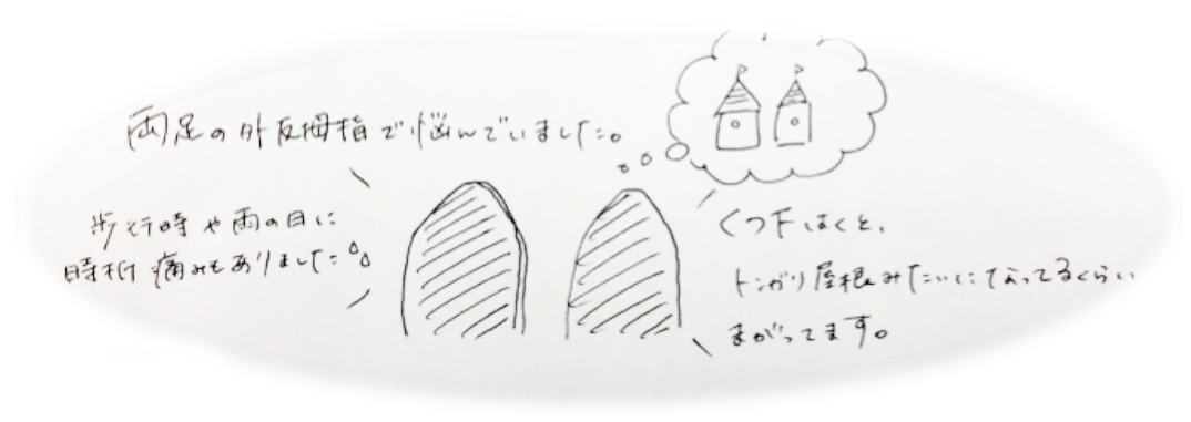 ヒールを履いて生活していてはダメなのではないか、今の生活スタイルで過ごしていて大丈夫なのか、外反母趾が痛いのは我慢していくしかないのかなど悩んでいましたが、痛みが無くなり、安心して過ごせるようになりました。